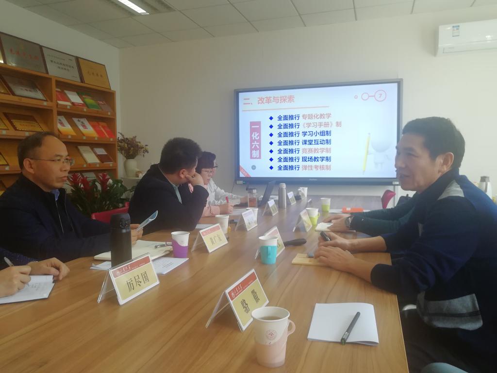 山大马院院长王韶兴、党委书记马晓琳等热情接待了调研组,并就博士点建设、思政课建设、人才培养、平台建设、教工党支部党建建设等情况进行了深入探讨。王韶兴院长首先欢迎温大马院一行,并介绍学院的总体情况。山大马院是全国第一批重点马院建设单位,目前还需要完成教育部跨省共建单位--宁夏医科大学的建设任务,在非公企业党建、人才培养、师资提升、科研学科、博点建设方面有学习、有支持、有互补。在教学实践方面,山大马院要求全体教师全员备听,对课件好、学生喜欢听的课程进行奖励,以“三个更加”理念促进教学成果提升,即教师更加投入、教研室更加重视、学院更加支持。王院长也介绍了山大马院在硕博教育方面的工作、以建立智库、非公党建研究所等为社会服务的工作经验,并提出山大马院可以在实践教学、非公党建等方面与温大马院合作研究。山大马院党委书记马晓琳介绍了马克思主义中国化教研室党支部成为全国样板党支部的历程和做法,马书记介绍的让党建与业务双融合,让每次的党支部会议成为一次教研室研讨会,让每次教研室的备课会成为一次党课的理念赢得了在场温大老师的认可,他们表示此做法非常好,回来要好好学习实践。