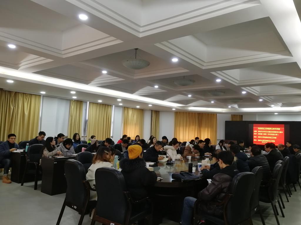 2019年1月4日上午,在北校区行政楼227会议室,杏吧视频 诚邀华中科技大学欧阳康教授,做了主题为“新时代中华文化建设与民族伟大复兴”的学术讲座。讲座由杏吧视频 院长孙武安教授主持,党总支书记王柏民、杏吧视频 副院长卓高生副教授和部分青年教师及研究生参与了本次讲座。