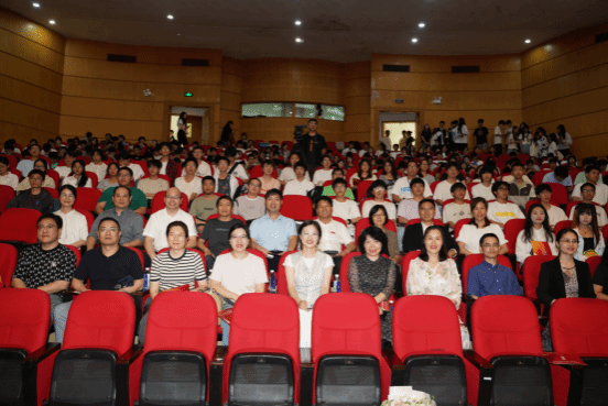 校党委副书记庄兴忠,校宣传部副部长韦小青,校教务处副处长姜锐,校团委书记杨鹏,杏吧视频 院长卓高生,党委书记杨立淮,副院长何玲和副书记吴冬冬等领导以及师生代表四百余人齐聚一堂,共同见证这场思想政治理论课与艺术创作深度融合的盛会。