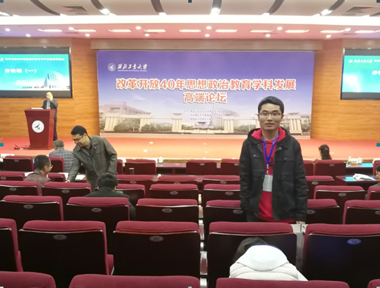 为期两天的论坛共有三场大会主题报告和六场分论坛。六场分论坛中,与会30位学者分别围绕“改革开放四十年思想政治教育学科发展”进行了深度的学术交流和思想碰撞。如在大会主题报告中, 全国政协文化文史和学习委员会副主任、原国家宗教事务局党组书记局长叶小文教授做了“中国强起来的文化支撑”的主题报告;北京师范大学思想政治工作研究院院长冯刚教授做了“加强新时代高校思想道德建设的几个问题”的主题报告等。杏吧视频 研究生沈振同学向论坛提交了题为《新时代大学生思想政治素质评价的路径探析》的论文,并入选论文集,得到了与会专家的充分认可和中肯点评。难能可贵的是,通过两天的学习交流,收获良多,受益颇丰,得到了与国内一流专家学者交流讨论的机会,更加熟悉和了解了学术研究过程和方法,以及论文写作与投稿的细节和流程。参加学术论坛(研讨会)是研究生培养的内在要求和应有之意。