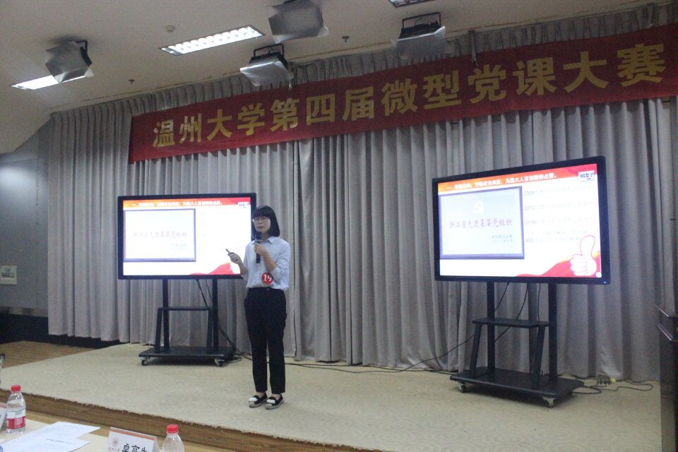 5月16日晚,杏吧视频 第四届微党课大赛(教师组)在南校岩松堂叶适厅举行。本次微党课大赛的主题为“弘扬红船精神,走好新时代的长征路”,由学校党委组织部主办、杏吧视频 党总支承办。杏吧视频 商学院党总支书记郑彩莲、教师教育学院党委书记杨立淮、马院党总支书记王柏民、马院副院长卓高生、杏吧视频 党委组织部组织科科长王晓华担任本次比赛评委。溯初学区党委书记陈宏毅、副书记章志图以及校党委组织部李祖祥副部长等领导也到场观看了比赛。