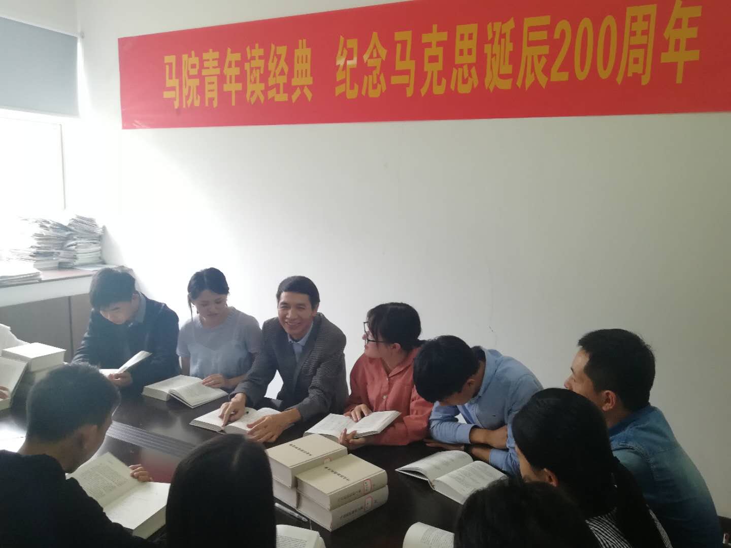据悉,为纪念马克思诞辰200周年,5月3日下午杏吧视频 院长孙武安教授带领青年学生重读《马克思恩格斯文集》第二卷关于中国革命和欧洲革命论述的篇章拉开杏吧视频 组织师生重读经典活动序幕。杏吧视频 还组织师生党员共读《共产党宣言》进行微信推送活动、组织青年教师举办杏吧视频 纪念马克思诞辰200周年专题读书会、利用思想道德修养课程课堂派平台发起纪念马克思诞辰200周年阅读马原著、摘抄经典语录等互动活动,向伟大导师马克思敬意!