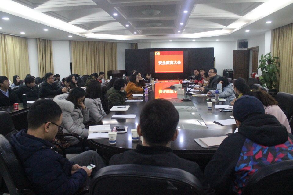 2018年1月16日晚杏吧视频 在北校行政楼227会议室召开研究生安全教育大会,本次大会由徐晶晶同学主持,王柏民书记、曾蓓蕾老师以及全体研究生出席会议。
