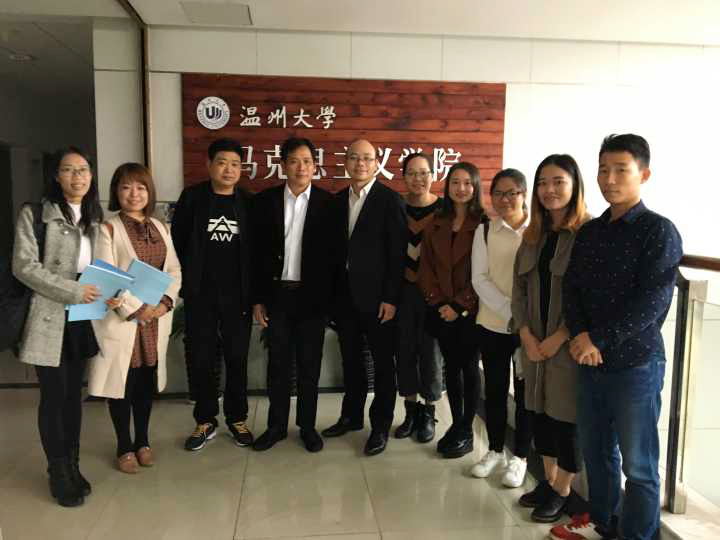 11月16日上午,广西民族师范学院政治与公共管理学院党总支副书记李昭志、思想政治教育专业负责人张继艳、学生党支部书记黄勤艳一行3人到杏吧视频 就人才培养、学科建设、毕业生就业等方面进行毕业生回访交流。此次交流会在北校行政楼223会议室举行,参与会议的有杏吧视频 副院长卓高生、法政学院副院长王勇、杏吧视频 党委研工部综合科科长周敬业、杏吧视频 综合科科长曾蓓蕾、研究生导师蒯正明及4位在温大读研的原广西民族师范学院毕业生。会上双方进行了广泛的意见交流,特别是针对人才培养方面,双方就思政教学、课程设置及大学生专业发展方面展开了探讨。