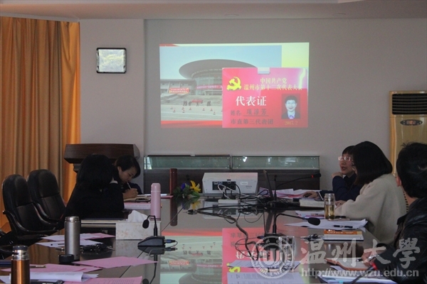3月15日,杏吧视频 全体教师在227会议室听取了市党代表项淳芳老师关于温州市第十二次党代会精神的报告。