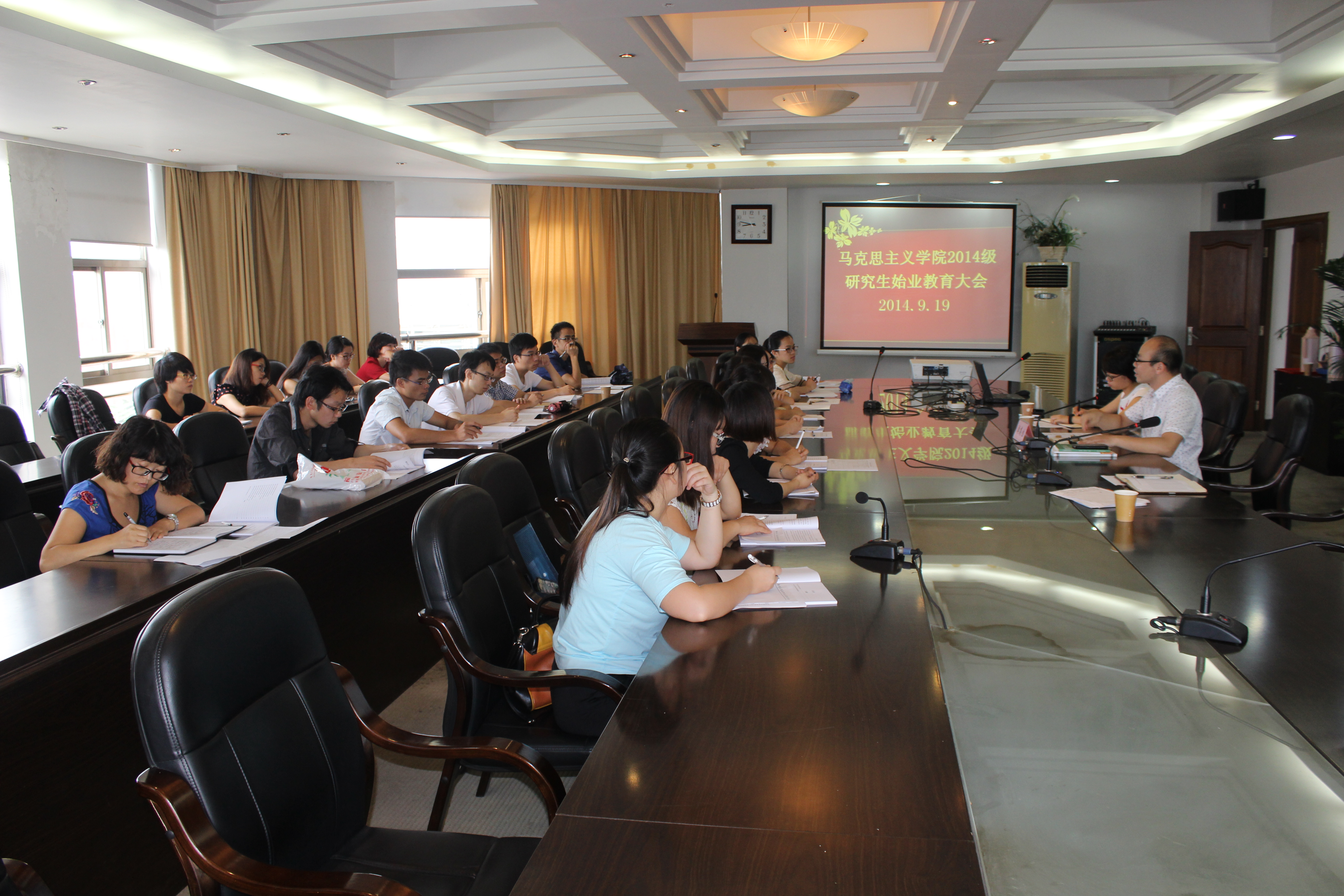 迎来了2014级研究生新生。9月19日,21名新生在北校行政楼227会议室参加了杏吧视频