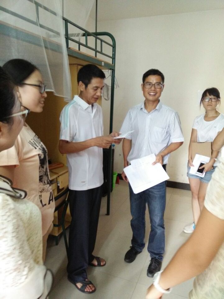孙院长每到一个宿舍都亲切地询问学生们来自哪里、对学校的印象如何、吃住是否习惯、生活上是否遇到困难等。关切地了解学生的思想和生活状况,询问同学们的家乡,并和同学们探讨当地的特色文化和乡风民俗,现场气氛十分融洽。同时孙院长也希望新生们尽快适应研究生生活,潜心学习,努力探究,争取三年后学有所成。