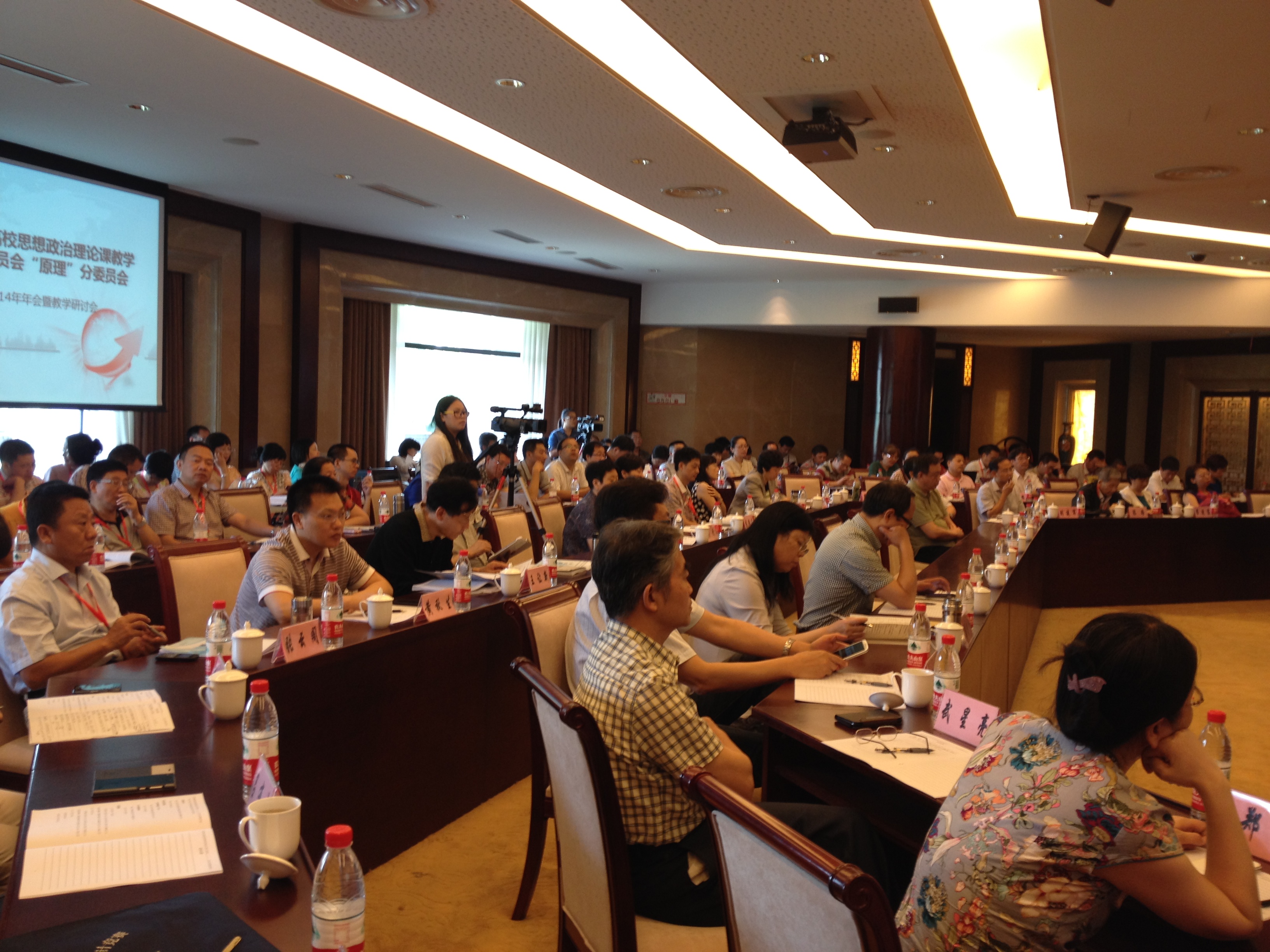 开幕式上,浙江工商大学校长张仁寿和省教育厅鲍学军副厅长分别致辞。教育部社科司司长张东刚,就如何贯彻落实习近平总书记关于加强高校思想政治理论课的重要指示精神作了指导讲话。原理教指委主任委员逄锦聚教授就如何讲好原理课作了专题报告。中国人民大学郝立新教授、张雷声教授和刘建军教授分别就“原理”课的教师用书、重难点解析和学生辅修读本的编写情况作了说明。 会议第二阶段,浙江工商大学何丽野教授、北京理工大学崔建霞教授、上海大学焦成焕副教授分别进行了20分钟的示范教学。南京航空航天大学王岩教授、北京师范大学白暴力教授、中国人民大学刘建军教授、云南师范大学陈路教授,浙江工商大学王来法教授,还有逄锦聚教授、张雷声教授对上述教学讲解做了精彩点评。在交流环节,浙江工商大学廖曰文教授介绍了2014年教育部思政课教学方法改革择优推广项目“高校思政课互动教学法探索与实践”的实施情况。会议还就原理课的教材、教师、教法以及实践教学、制度保障等问题进行了分组讨论。最后,原理教指委副主任、中国人民大学张雷声教授作了大会总结。
