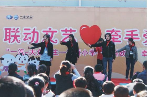 东梧小学为我们的这次爱心活动准备了丰富多彩的节目,同时我们和萤火虫义工团的工作人员进行的手语表演、兔子舞、影集展示将整场活动带向了高潮,特别是影集展示较为集中的展现了我们历次志愿活动,这在一定程度上传播了我们的志愿者精神。整个活动最后在大众公司举行的赠书仪式中落下帷幕。而我们不得不带着依依不舍的心情离开东梧小学,踏上归途。