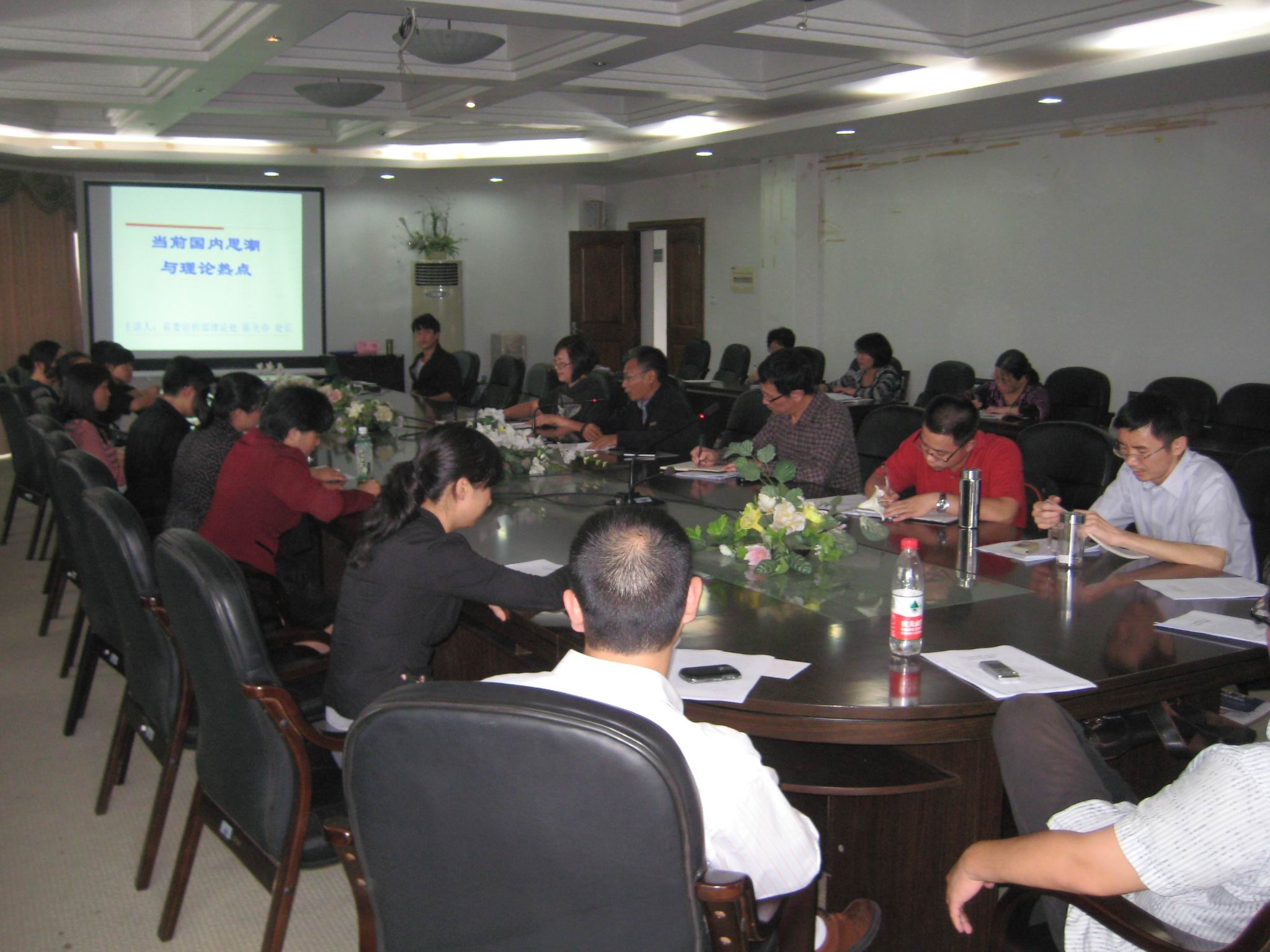 为了拓宽广大党员的理论视野,提升理论素养,让“创先争优”活动更有内涵,10月13日下午,思政部召开党总支理论学习扩大会议,专门邀请浙江省省委宣传部理论处陈先春处长为全体党员、教师和研究生作“当前国内思潮与理论热点”的讲座。