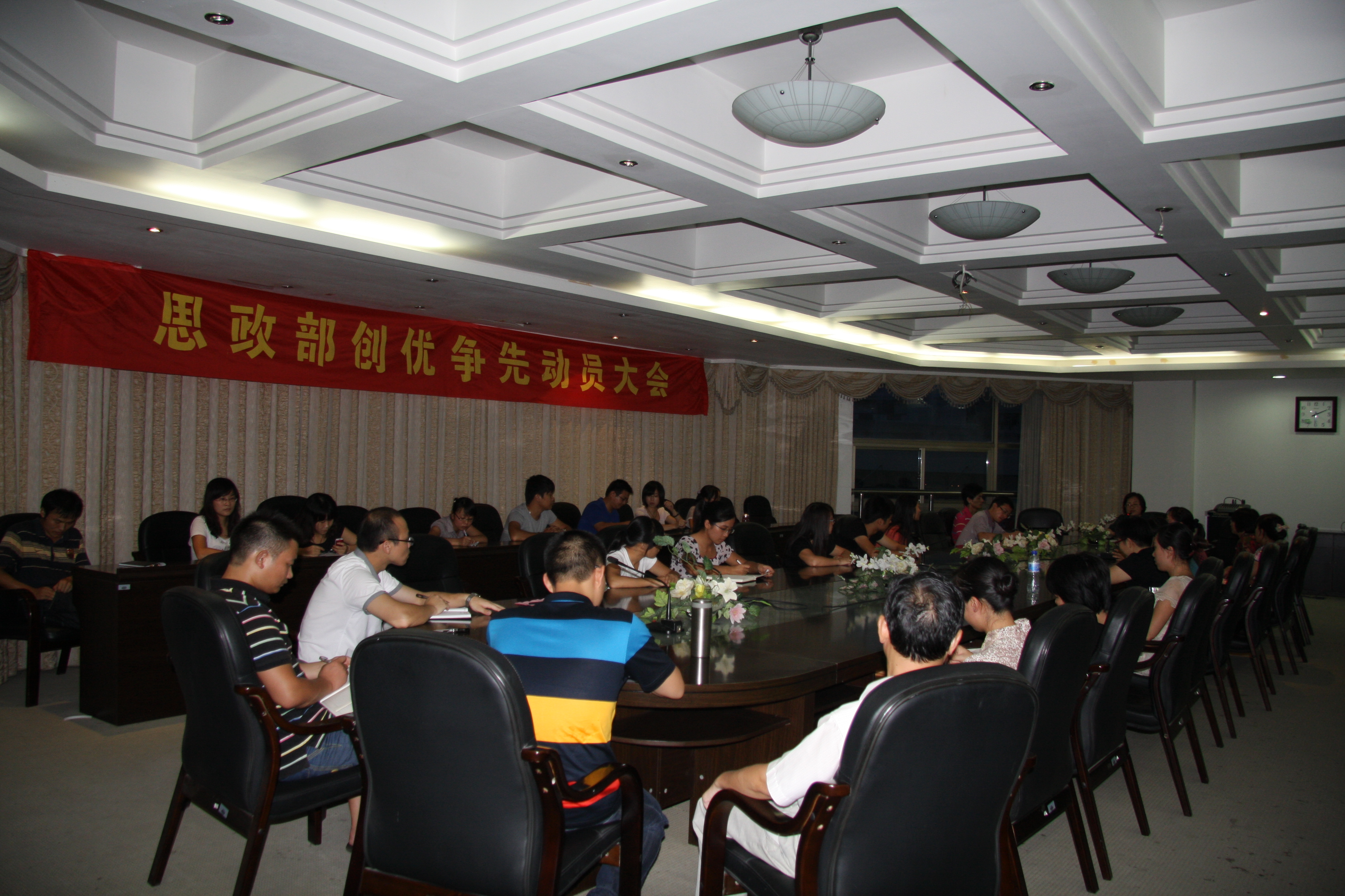 为全面贯彻落实校党委的有关工作部署,深入开展创先争优活动,巩固和拓展深入学习实践科学发展观活动成果,9月21日,思政部党总支召开了“深入开展创先争优活动动员大会”。思政部全体教工和研究生党员参加了会议。会议由党总支书记任映红主持。