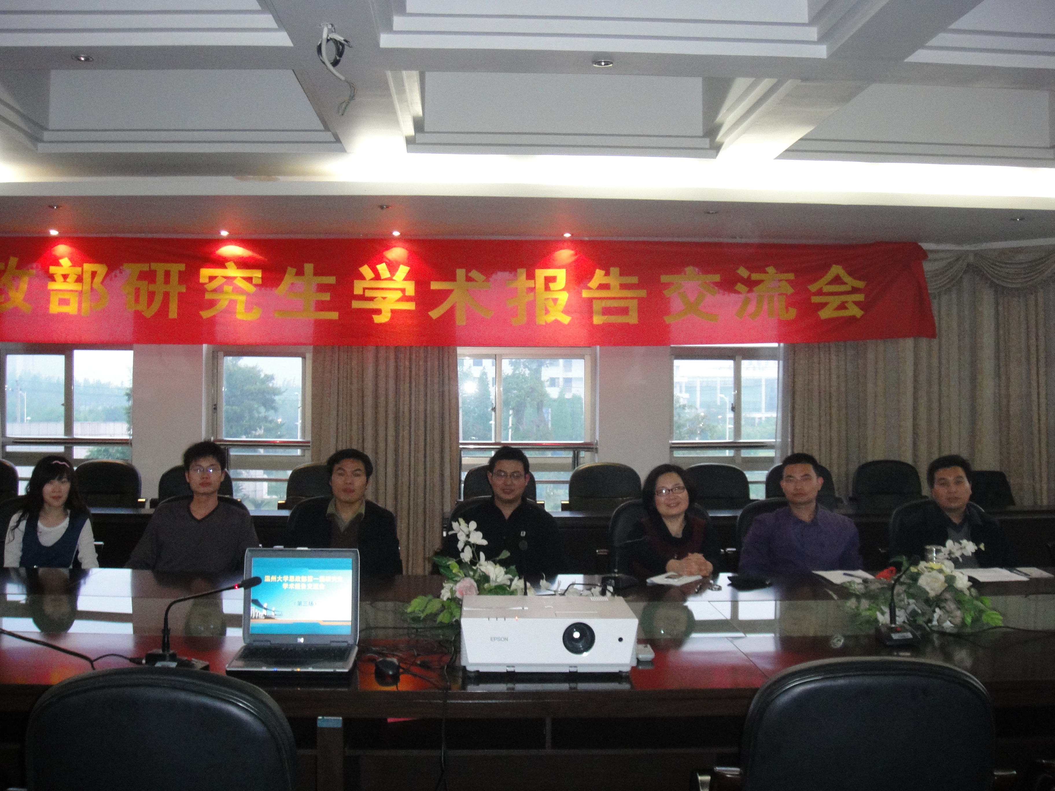 春雨润校园,书香沁学子。4月22日晚六点整,思政部08级研究生在北校区行政楼227会议室举行了本届学术报告交流会的第三场。思政部主任、教授任映红、温州中学政治教研室主任、政治名师陈作棉应邀担任点评嘉宾,08级班长申恒运同学主持了交流会。