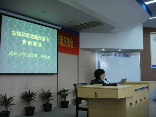 思政部任映红教授作了题为《加强和改进新形势下党的建设——学习党的十七届四中全会精神的体会》的报告。