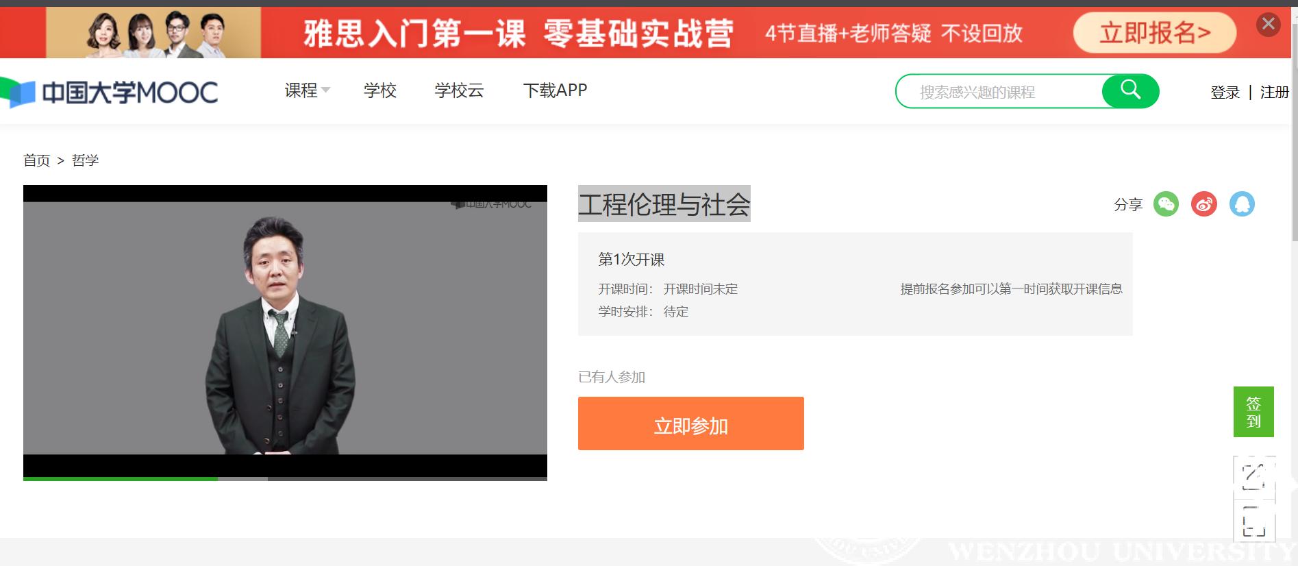 热烈祝贺:中国大学MOOC《工程伦理与社会》(杏吧视频 )正式上线开通!