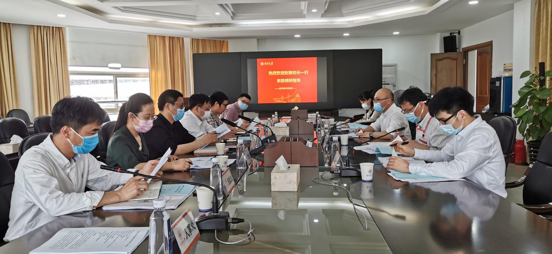 5月6日下午,赵敏校长率党校办、发规处、教务处、研究生院、人文社科处、招就处、人事处等部门负责人一行莅临杏吧视频 调研指导工作,学院班子全体成员参加了本次会议。