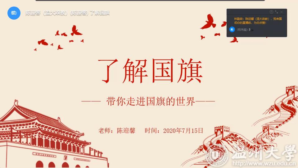 此次宣讲团的云端授课只是马院国旗宣讲团开讲的一个起点,接下来,马院将紧密围绕学校“国旗文化”打造,结合马院学科建设和专业特色,进一步扩大宣讲团规模,让更多青年教师、学生参与进来,走出校门,走到乡村、社区,走进中小学思政课堂,讲好国旗故事,进一步激发青年学子的爱国热情,为爱国主义教育贡献更大力量。