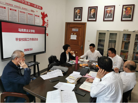 2020年11月4日,学院召开平安校园工作推进会,学院领导班子、思政系主任、副主任参加了会议。会议由王柏民书记主持。