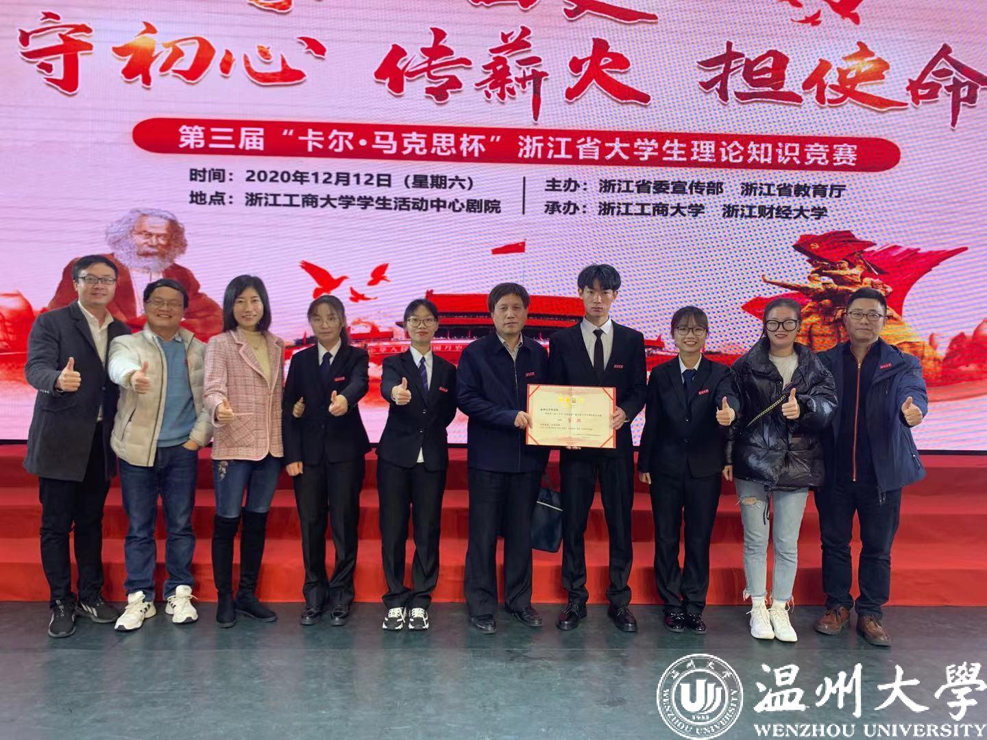 12月12日,第三届“卡尔·马克思杯”浙江省大学生理论知识竞赛在浙江工商大学圆满落幕,杏吧视频 代表队荣获一等奖和优秀组织奖。