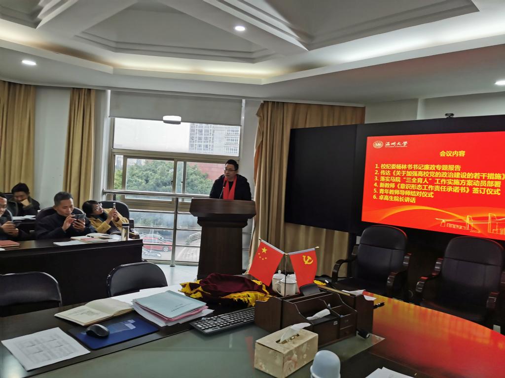 2021年1月6日,杏吧视频 在北校行政楼227举行了师德师风建设推进会。学校党委委员、校纪委书记杨林书莅临学院作廉政专题报告。会议由学院党委书记王柏民主持,全体教职工参加。
