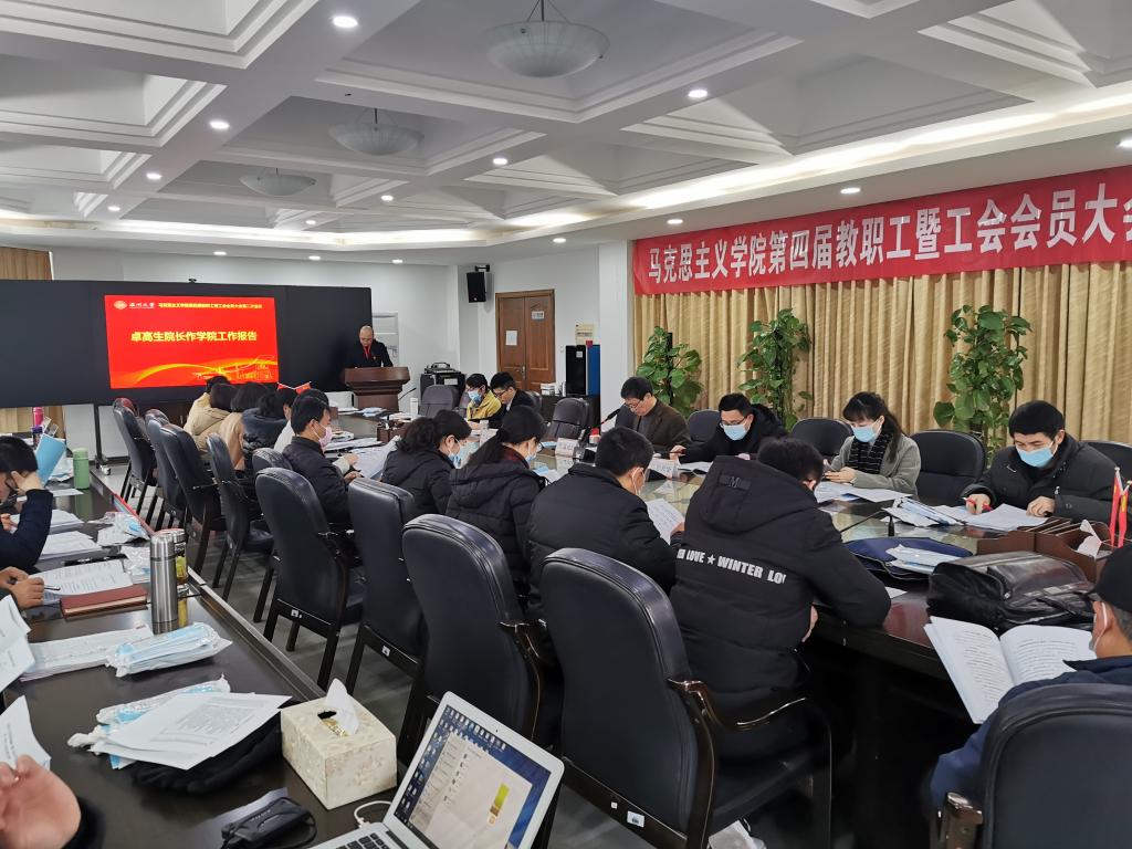 大会在庄严的国歌中拉开序幕。卓高生院长作2020年学院工作报告。报告对2020年工作进行了回顾和总结:2020年是极不平凡的一年,杏吧视频 党政班子不忘初心、牢记使命,统一思想,提高站位,全体师生协同奋进,2020年各项工作取得了显著发展。一是锚定“升博”,学科建设实力大幅提升,申博工作机制完善,人才队伍建设优化,学科影响力不断提升。二是“以生为本”,人才培养体系进一步完善,思政课程不断改革与创新,思政课质量提升工程成效凸显,省一流本科专业建设扎实推进,研究生教育内涵建设长足发展。三是立足服务地方,科研成绩取得新发展,科研成果丰硕,科研平台获新突破,学术交流有新举措,校地合作取得新进展。四是坚持立德树人,学院师生思想政治教育工作扎实开展,党建引领示范不断强化,宣传思想工作成效显著,校友工作成绩明显,工会工作业绩突出。2021年,立足学校省市共建重点校建设,围绕升博和以侨为特色的省部共建两大战略目标和七大发展战略,学院将始终围绕立德树人根本任务,积极谋划学科、科研、教学、人才培养、党建等各项工作的新篇章。