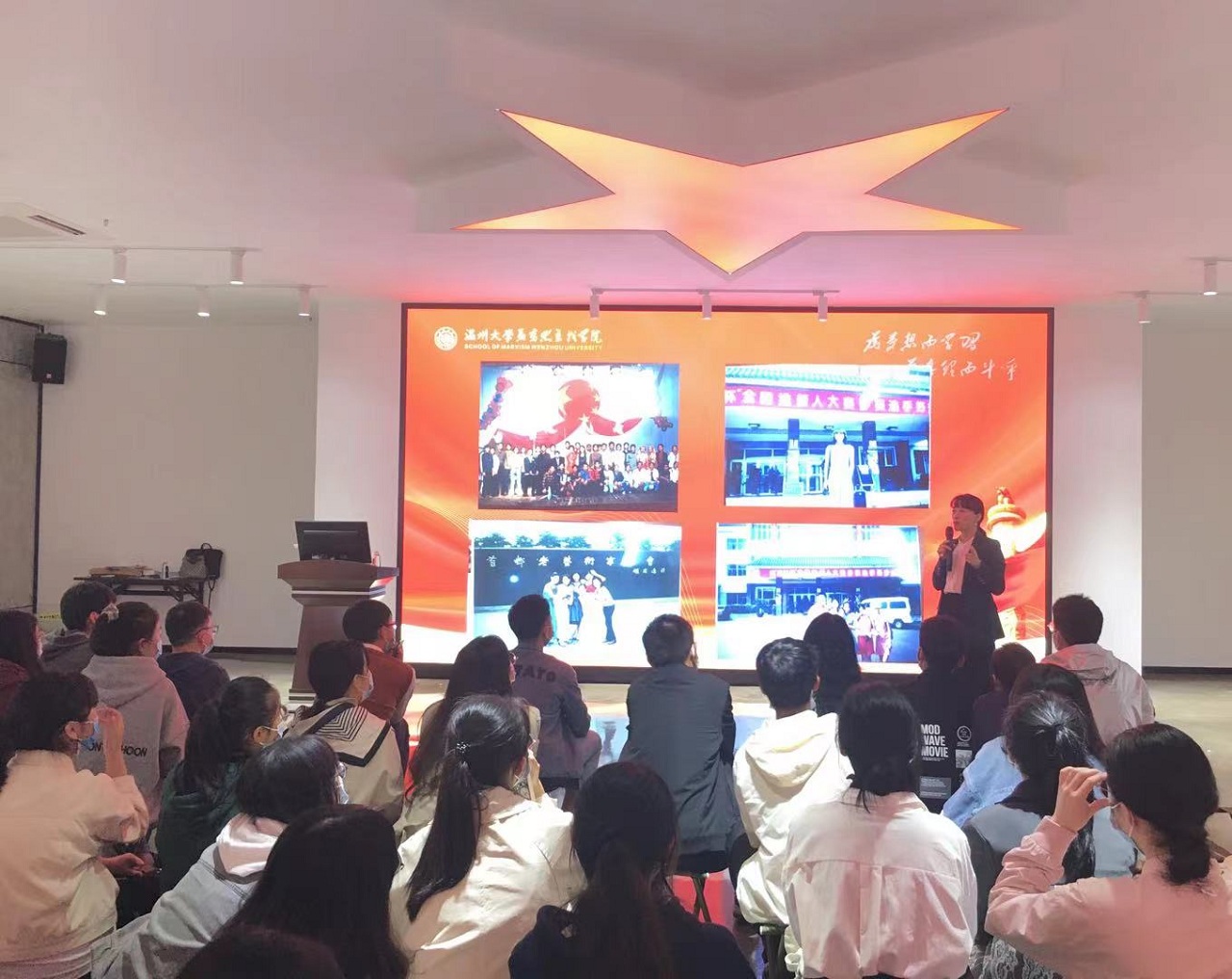最后,叶老师结合自身经历,向马院学生干部们发出四点倡议:要充分协同,做到团队氛围温暖如春;要斗志昂扬,做到活动开展激情如夏;要集思广益,做到活动成效丰收如秋;要廉洁自律,做到团队生态纯净如冬。每一位学生干部必须做好充足的准备,以昂扬的姿态,共同建设青春马院。