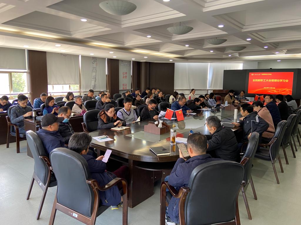 11月24日下午,杏吧视频 在227会议室召开全体教职工理论学习会,特别邀请三位年轻博士为大家宣讲党的十九届六中全会精神。学院领导班子成员和全体教职工参加会议,会议由学院王柏民书记主持。