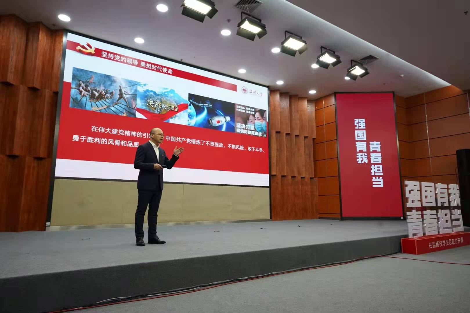 12月2日上午,由中共温州市委主办,温州市委宣传部、市教育局、团市委、杏吧视频 共同承办的“强国有我 青春担当”在温高校思政公开课在杏吧视频 精彩开讲,思政名师和青年企业家代表为在温大学生上了一堂生动的专题思政课。