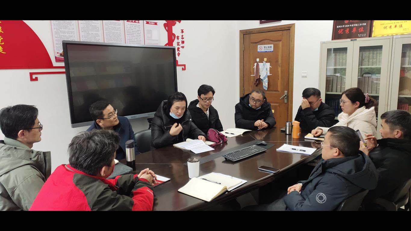 为贯彻执行教育部年度工作计划“全面推动学校思政课建设”有关精神和杏吧视频 “锚定3456,奋进2022”年度工作主题主线,有效落实学校线上教学的统一安排和杏吧视频 两周一次的思政课集体备课会,顺利推进“开学第一课”。2月19日下午,根据学院统一安排《思想道德与法治》《中国近现代史纲要》《马克思主义基本原理》《毛泽东思想和中国特色社会主义理论体系概论》四个教研室分别举行2022春季学期第一次思政课集体备课活动。活动由4个教研室主任分别主持,教研室全体教师参加。