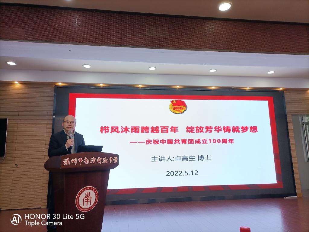仪式主要分成四个阶段:第一阶段,新团员退队入团仪式;第二阶段,少年思政学院成立揭牌与颁发校外导师聘书,卓高生教受聘担任南浦实验中学少年名誉院长;第三阶段,杏吧视频 本硕校外实践教学基地签约授牌仪式;第四阶段,南浦实验“博士讲坛”第一讲开讲,卓高生教授为在座的学生与老师做《栉风沐雨跨越百年 绽放芳华铸就梦想——庆祝中国共青团成立100周年》专题讲座。