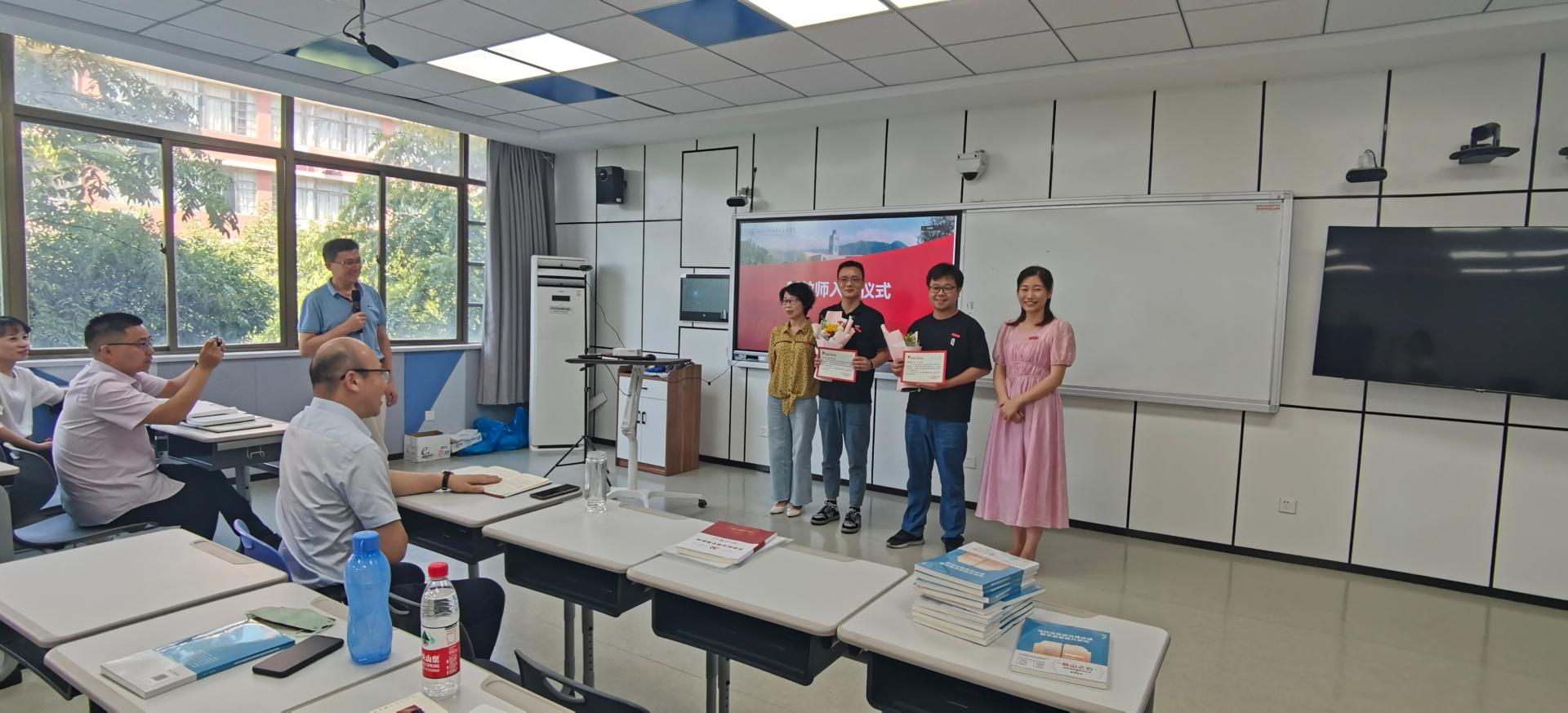 会议首先对近期入职的新教师进行了简单而热烈的欢迎仪式。概论教研室主任何玲老师、思政系主任孙金波老师分别向新入职的鲁文博士、安保国博士送上了学院特别准备的鲜花和入职纪念卡,并为他们佩戴了杏吧视频 校徽。希望两位新教师能够在杏吧视频 开启事业的精彩篇章。