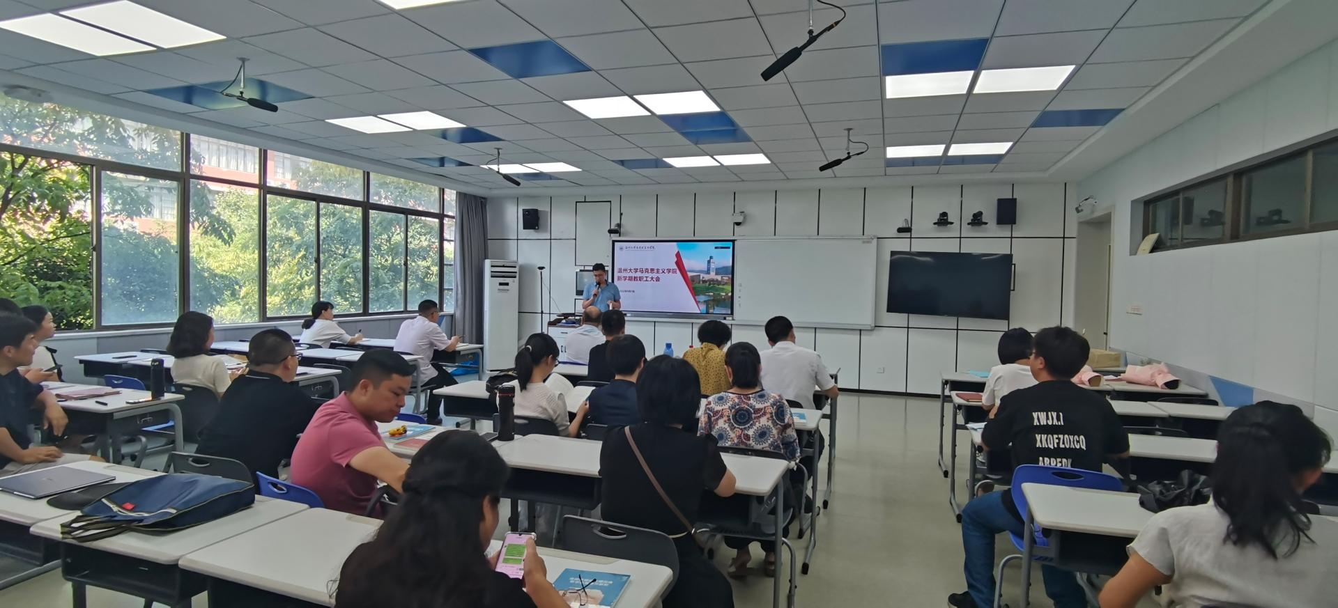 2022年9月7日,杏吧视频 新学期全体教职工大会在北4-204教室召开。学院领导班子成员和全体教职工参加会议,此次会议由学院党委书记王柏民主持。