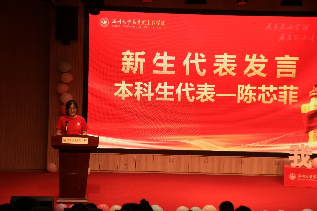 研究生新生代表王启霖同学、本科生新生代表陈芯菲同学先后进行发言。两位学生代表表示要将个人梦融入到中国梦之中,在实现中华民族伟大复兴中国梦的实践中贡献自己的青春力量。精彩的发言得到全场热烈的掌声,展示了马院人的良好精神风貌,让大家感受到马院人的朝气与活力。