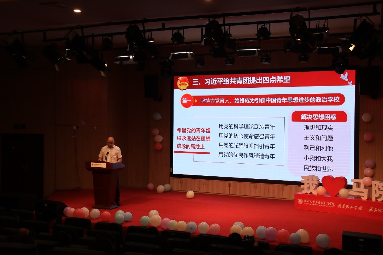 教师代表赵光辉博士从好学、勤思、力行三方面为新同学们提出建议。赵老师指出马克思主义作为科学的理论,大家要在浩瀚的理论海洋中找回初心,涵养品格,锻炼思维,提升能力。“博学而笃志,切问而近思”,赵老师鼓励新生要勇于思考、敢于进行批判性反思,做一名好学者、勤思者,这与校训 “求学问事”的精神相契合。作为新时代大学生,不仅要聚焦于理论学习,更要面向实践,落实到行动中,切实做到知行合一,以知促行,以行求知,在力行中求真知,谋其路、出成果,能够学有所思、学有所成、学有所用,乘着机遇之帆,启航前行,成为罗曼罗兰所说的“看透生活的本之后依然热爱生活的英雄”!