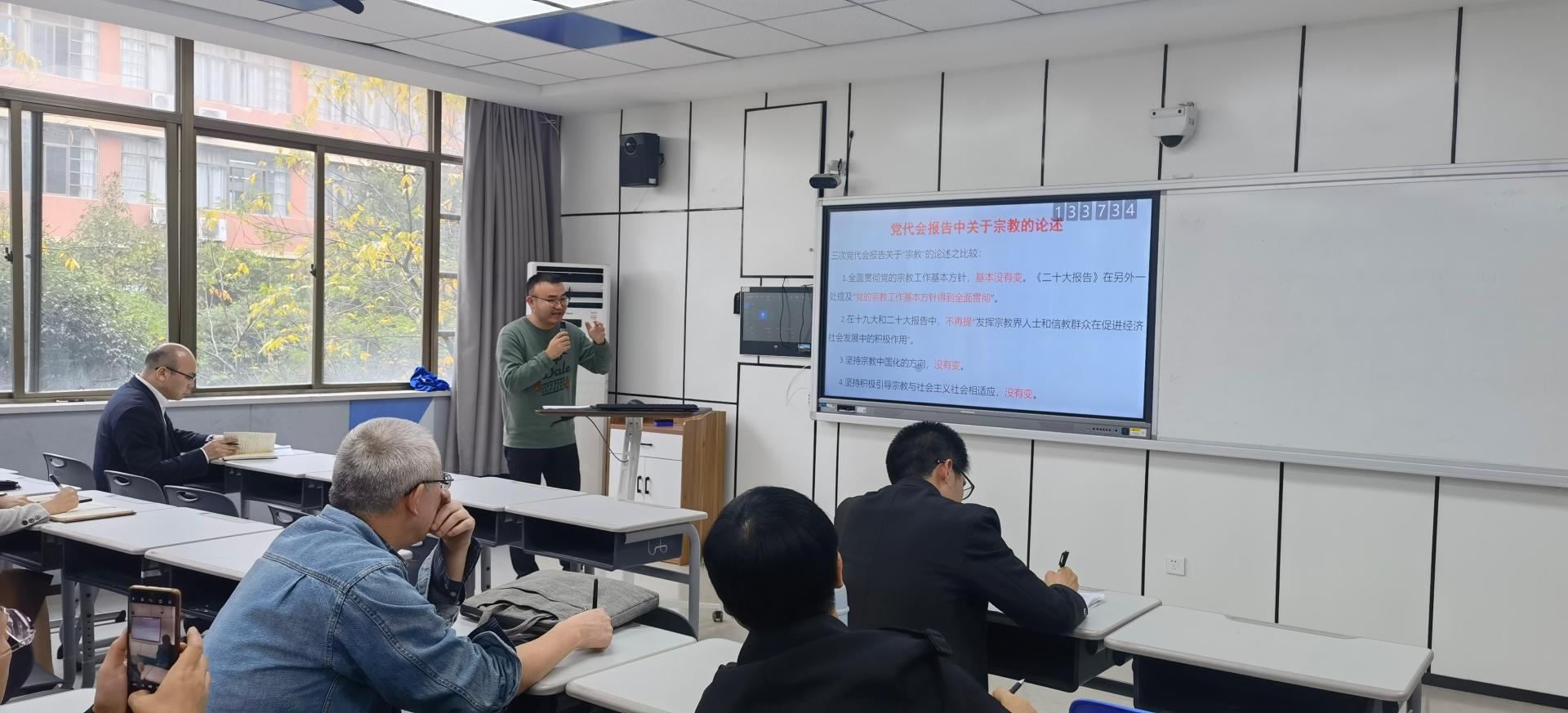 本次学习会由吴琼博士、梁家荣博士分别作《把握“中国式现代化”核心要义——学习二十大报告》和《学习“二十大精神”心得体会》领学,分享二十大学习心得。吴琼博士从党的二十大主题切入,分析了大会召开的历史背景,讲解了过去五年的工作和新时代十年的伟大变革,结合当下的国际形势,阐述了对新时代新征程中国共产党的使命任务的理解。梁家荣博士从党的二十大报告关于宗教的论述出发,回顾了十八大以来党的基本宗教政策,如何积极引导宗教与社会主义社会相适应,依法管理宗教及实现途径。