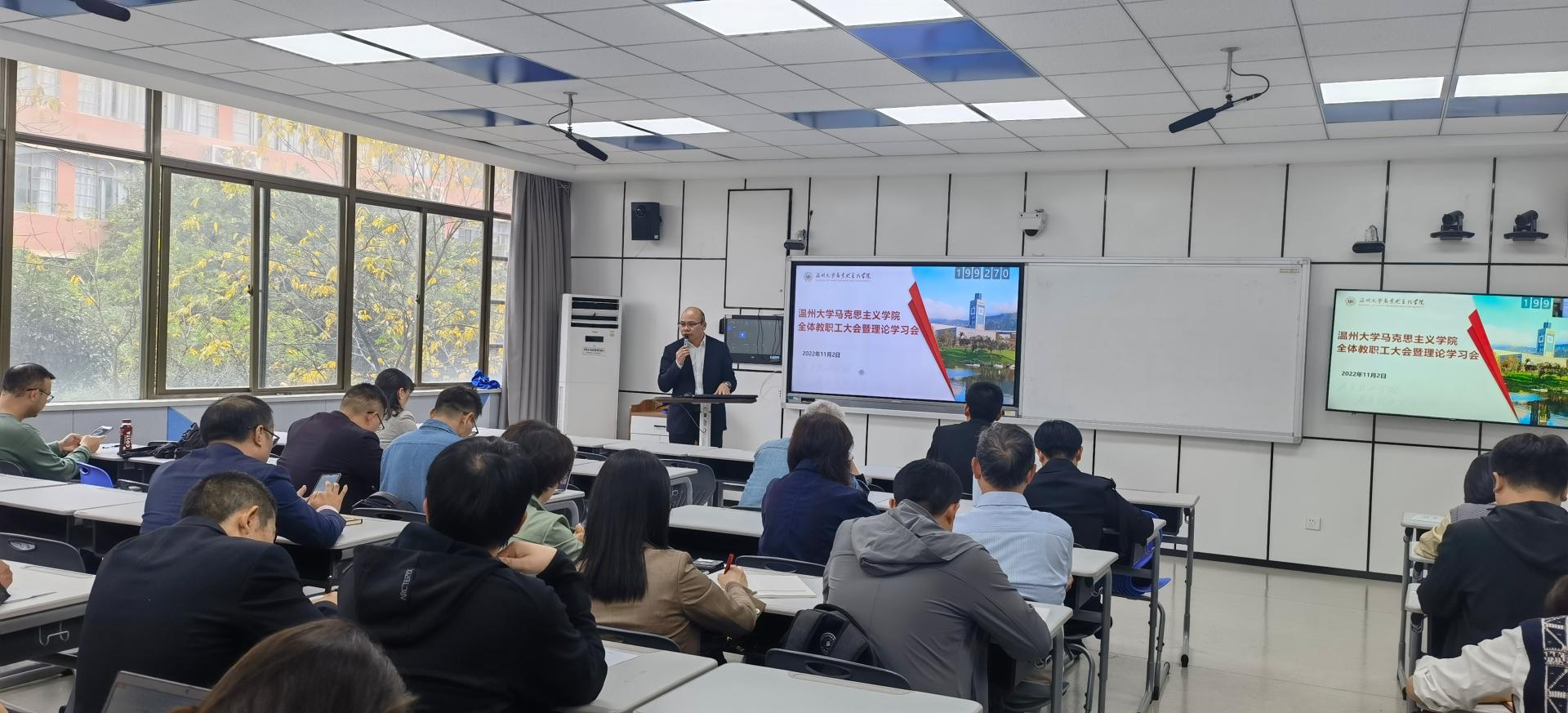 11月2日,杏吧视频 全体教职工政治理论学习会在北4-204教室举行,会议由学院党委副书记、院长卓高生主持,全体教职工参加会议。