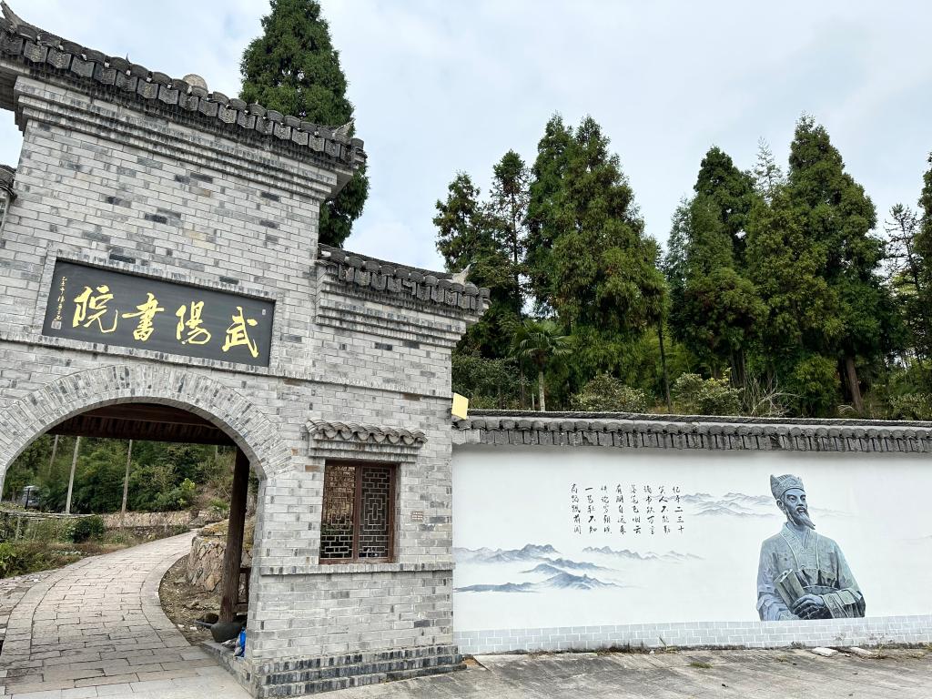 我们慕名来到武阳书院。虽说如今的武阳书院是专为拍电视连续剧《刘伯温》而修建的,但此地的确是一个读书的好地方。书院座落在山凹处,幽深寂静。四周树木葱茏,树上的鸟儿嘤嘤成韵。书院前有一个池塘,塘水清澈,微波粼粼,偶有几条鲤鱼“往来翕乎”,与游者相乐。池塘中间建有一亭,亭中摆一棋盘,我想这是学子课余休憩的好去处。书院内摆设古朴典雅,有孔子像,有书桌,有卧房。十四岁之后,刘基出武阳书院,经武阳岭去外地求学。先赴郡庠学习,研读《春秋》等儒家经典。期间,他接受了郡庠的系统教学,又受永嘉学、婺州学、永康学等耳濡目染,同时也不忘对军事、天文历法等诸书的涉猎,皆是“过目洞识其要”。后又到讲学蔚然盛行的石门书院继续求学。