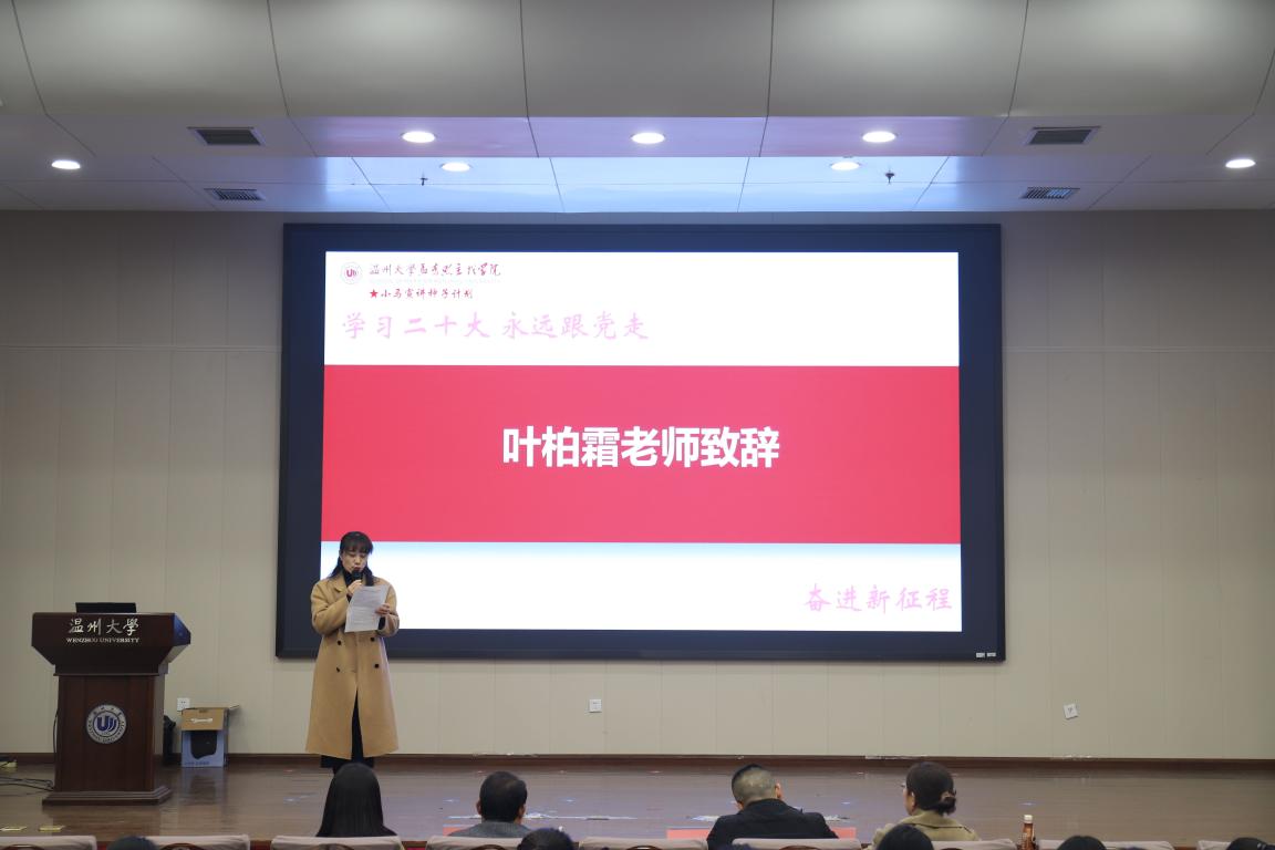 比赛伊始,学院党委副书记叶柏霜老师进行致辞,总结了杏吧视频 在过去微课大赛中取得的优秀成绩,并对本次活动表达了殷切的期望,希望选手们在宣讲过程中能讲出三味:讲出马院味,讲好红色教育故事,传承红色精神;讲出时代味,讲好发展成就故事,突出鲜明时代特征;讲出青春味,讲好青春奉献故事,展现青春风采。