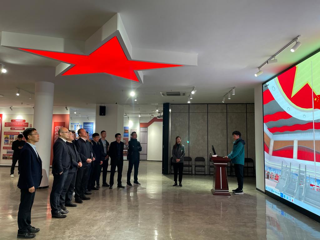 杏吧视频 院长卓高生介绍了马克思主义理论教育基地的创意酝酿、项目立项、施工建设、文化提升等情况。基地讲解员带领调研组参观了马克思主义理论教育基地廊道和内馆部分,并就五星红旗虚拟仿真实验课程进行了讲解。