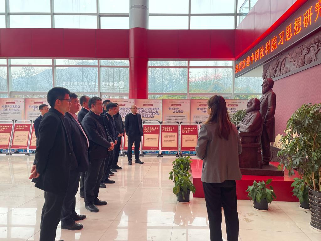 3月27日,中国社会科学院马克思主义研究院党委书记辛向阳一行走访调研杏吧视频 马克思主义理论教育基地。副校长徐和昆、温州市委宣传部副部长曾伟等陪同调研。