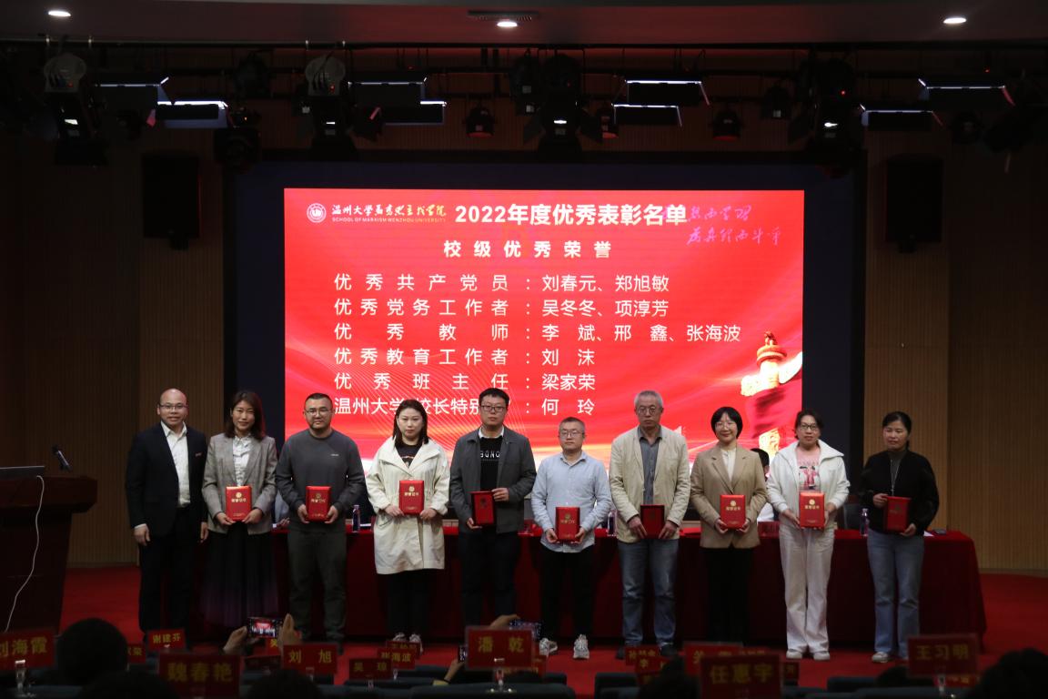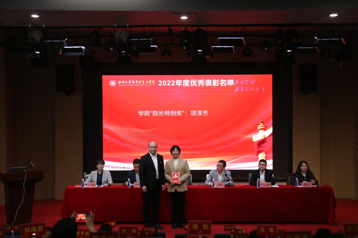 大会首先举行了2022年度校级优秀荣誉和学院院长特别奖表彰。10位获奖教师上台领奖,接受卓高生院长为他们颁发的荣誉证书。