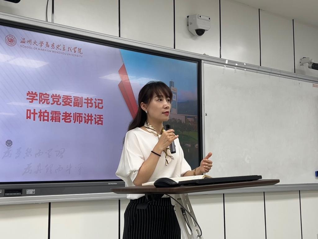 学院党委副书记叶柏霜老师高度赞扬了同学们在此次校庆活动中的志愿服务工作,并强调同学们在志愿工作中要始终贯彻“奉献、友爱、互助、进步”的中国青年志愿服务精神。随后,叶柏霜老师结合自身的工作经验对同学们提出几点期望:更充分做好前期准备工作;更精准把握沟通细节;更慎重对待每一个细节;更主动参与志愿服务。希望同学们在老师的领导下,做好每一次志愿服务,与学院协同发力,不断走上新的发展台阶。