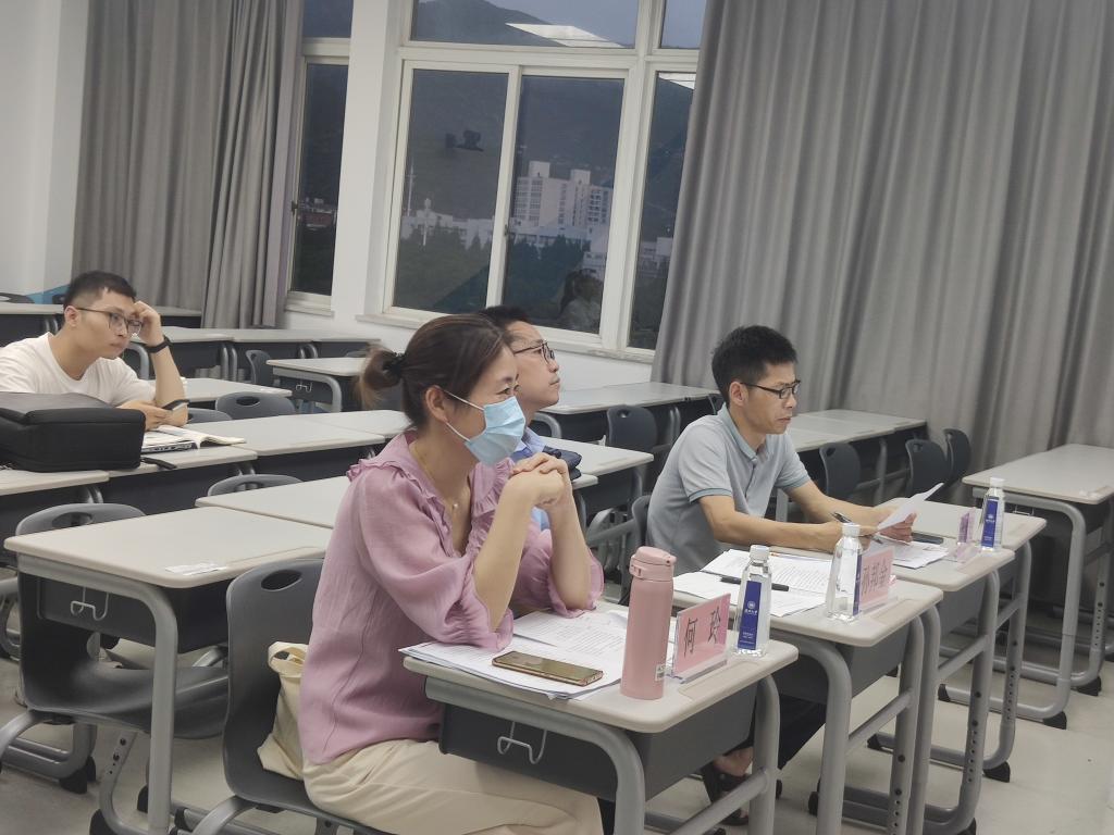 本次考核分为五组同时进行。各组的考核组长分别为孙金波老师、石磊老师、刘爱武老师、路永照老师以及孙邦金老师。同学们事先在导师的指导下完成对高中政治课本必修一、必修二的选题和撰写教学设计与课件。最终呈现十分钟的模拟上课环节,并对现场老师就课堂教学、教学理念、核心素养落实等方面的问题进行回答,答辩时间为五分钟。考核小组组长以及组员在教学设计、多媒体课件、模拟上课和答辩等部分共同商议打分,决出优胜者。其中,对22级学科教学(思政)研究生的点评作为其教学能力过关考核依据。
