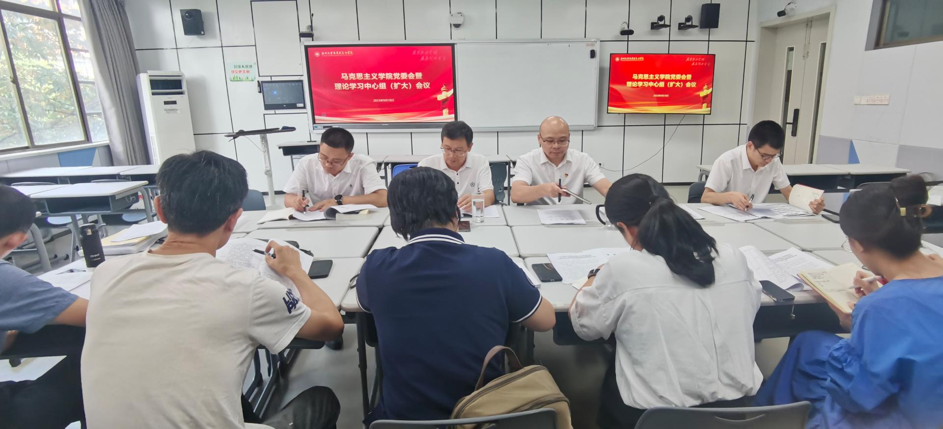 为深入贯彻校党委学习贯彻习近平新时代中国特色社会主义思想主题教育部署会精神,9月18日下午,杏吧视频 召开党委会暨理论学习中心组(扩大)会议。学院班子成员、党委委员、组织员、各党支部书记参加会议。