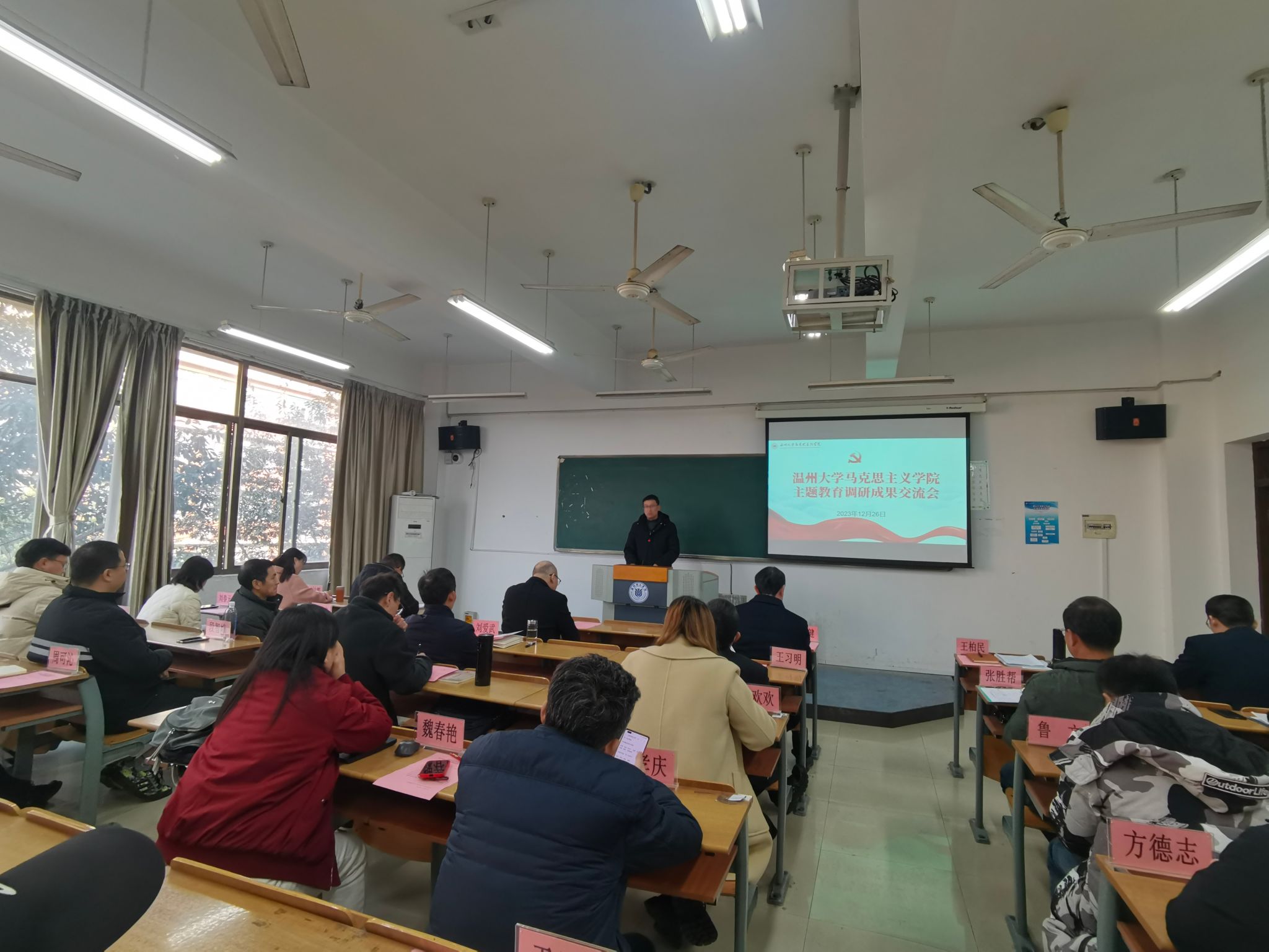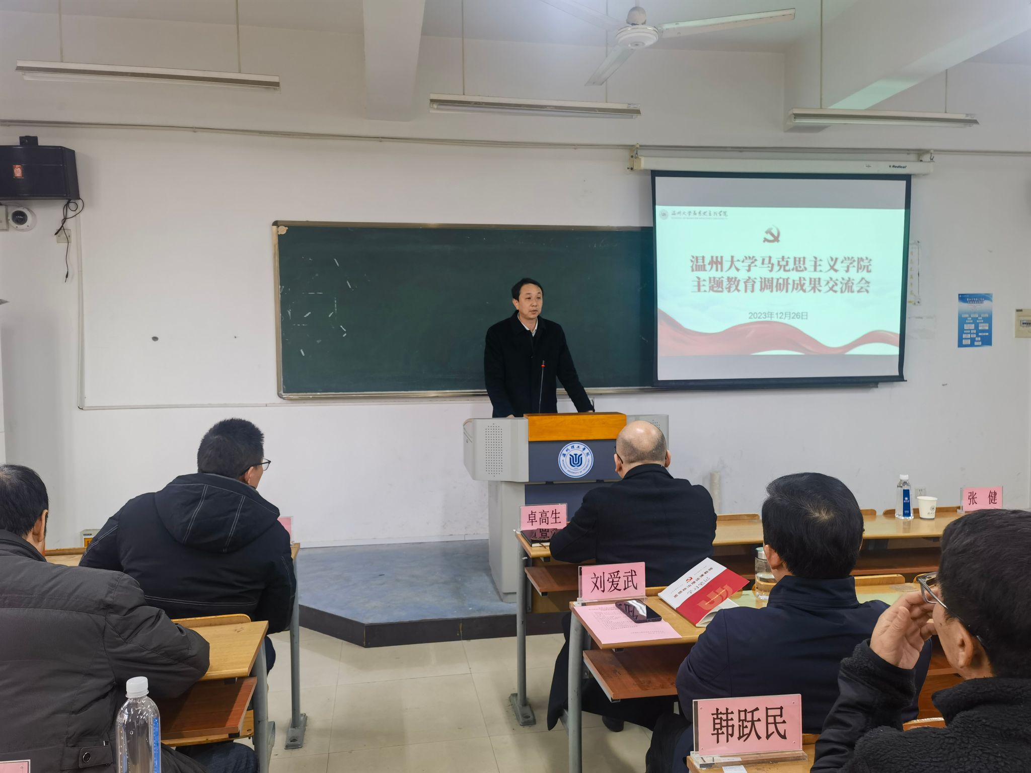 2023年12月26日,杏吧视频 在北校区4号楼310教室召开了学习贯彻习近平新时代中国特色社会主义思想主题教育调研成果交流会。校党委书记张健莅临现场指导,校主题教育督导组张胜帮、林丽丽老师列席会议,杏吧视频 班子全体成员、部分教师代表参加会议。会议由学院党委书记王柏民主持。