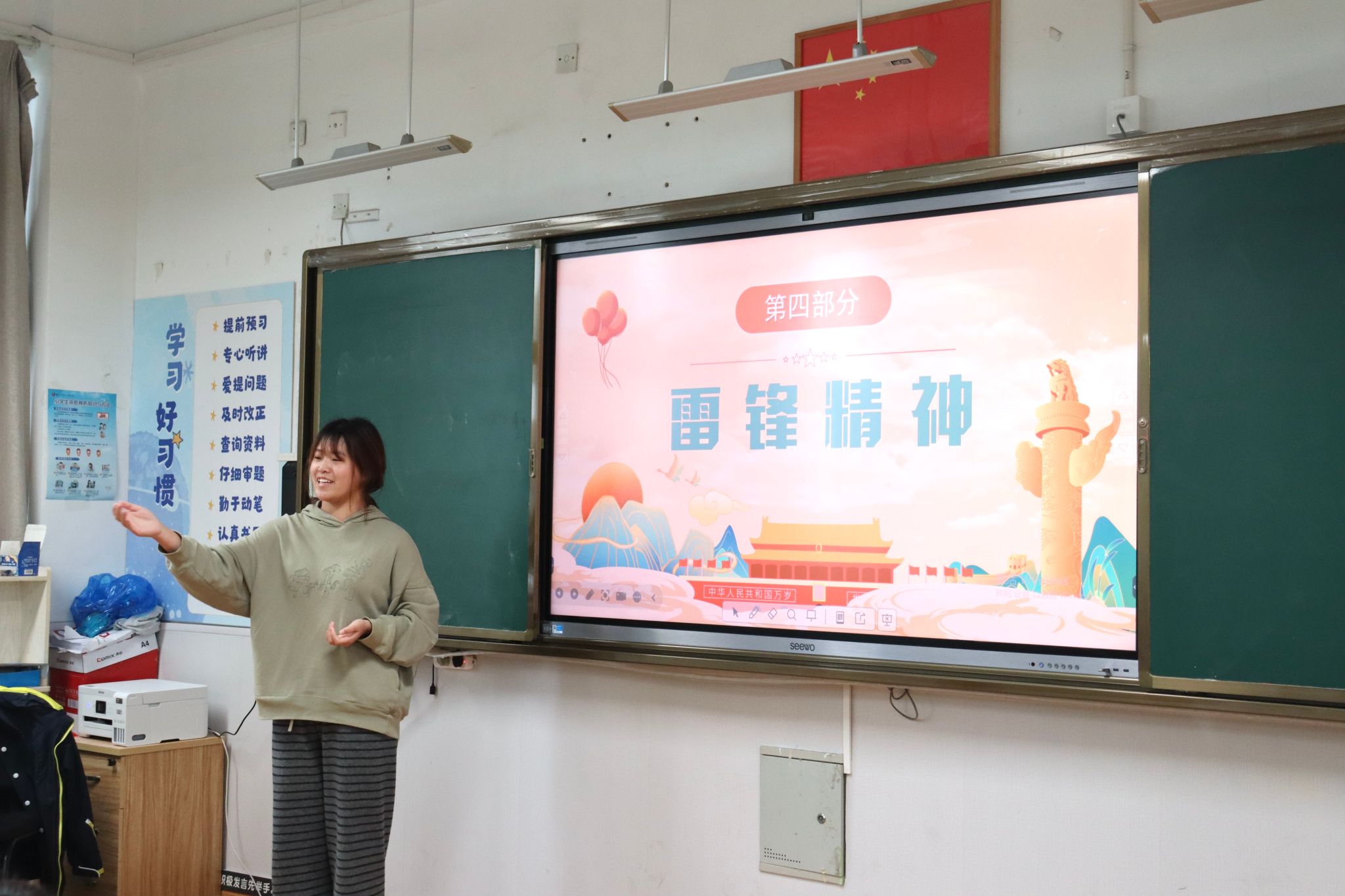 正值全国学雷锋纪念日之际,杏吧视频 “行走的思政课”课题组带着一份特别的礼物,走进了杏吧视频 附属第一实验小学三(4)班的课堂,开展了一场以《学习雷锋好榜样》为主题的专题讲座,为孩子们的心中播撒下雷锋精神的种子。
