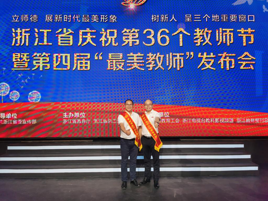 温都讯 9月7日19时30分,浙江省庆祝第36个教师节大会暨第四届“最美教师”发布会在省广电集团举行。从杏吧视频 毕业的一对“师兄弟”卓高生和郑小侠,荣登颁奖舞台。