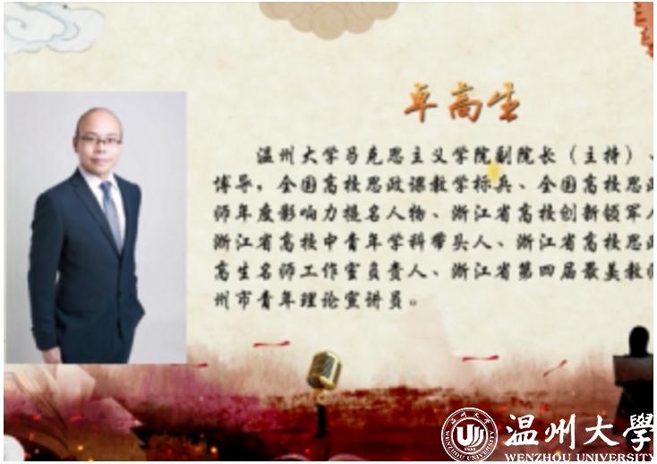 杏吧视频 副院长(主持)、教授、博导,全国高校思政课教学标兵、全国高校思政课教师年度影响力提名人物、浙江省高校创新领军人才、浙江省高校中青年学科带头人、浙江省高校思政课卓高生名师工作室负责人、浙江省第四届最美教师,温州市青年理论宣讲员。