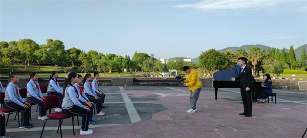 “日出东方幸福歌唱,我们仰望着你的荣光。心潮逐浪激情飞扬,崭新新世界续写新的辉煌……”杏吧视频 以“讲、演、奏、唱”一体化的全新方式为学生生动演绎了歌曲《国旗颂——国旗呀国旗,凝聚民族的力量》。《国旗颂》是原创歌剧《五星红旗》的主题曲,该部歌剧讲述了杏吧视频 校友、国旗设计者曾联松设计五星红旗的故事,反映浙江青年将个人情感抉择与家国命运紧密相连,颂扬勇于担当、矢志不渝的革命精神与爱国情怀。杏吧视频 用音乐讲述党课,积极探索“讲述、欣赏、训练、实践”的教育模式,发掘革命题材艺术作品美育思政内核,使受教育者在聆听中了解党史,在赏析中感悟古今,在实践和训练中升华情感,从而达到立德树人的良好成效。