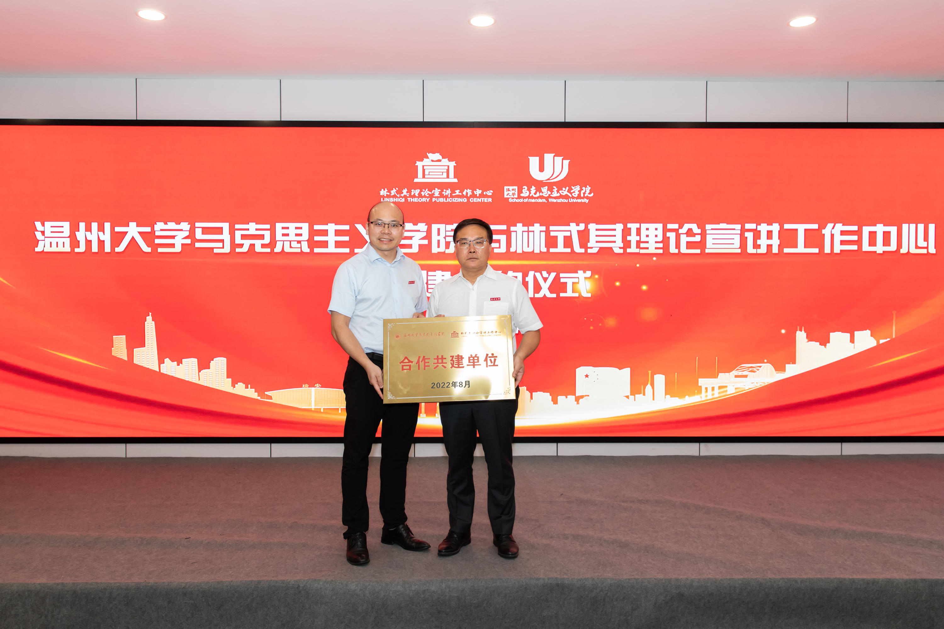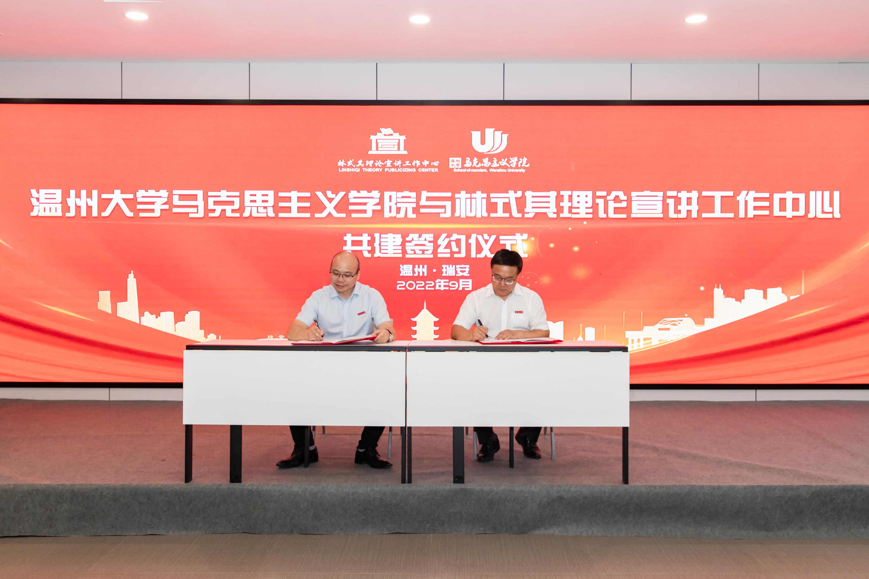 当天在瑞安市新时代文明实践中心,杏吧视频 院长卓高生和林式其理论宣讲工作中心创办者林式其,共同签署杏吧视频 与林式其理论宣讲工作中心合作共建协议书,温大杏吧视频 聘请林式其为客座教授。接下来,双方将共同探索建立高校与基层宣讲人才互派交流、宣讲活动联动举办、理论研究共研共享的机制,打造理论宣讲的全新阵地。