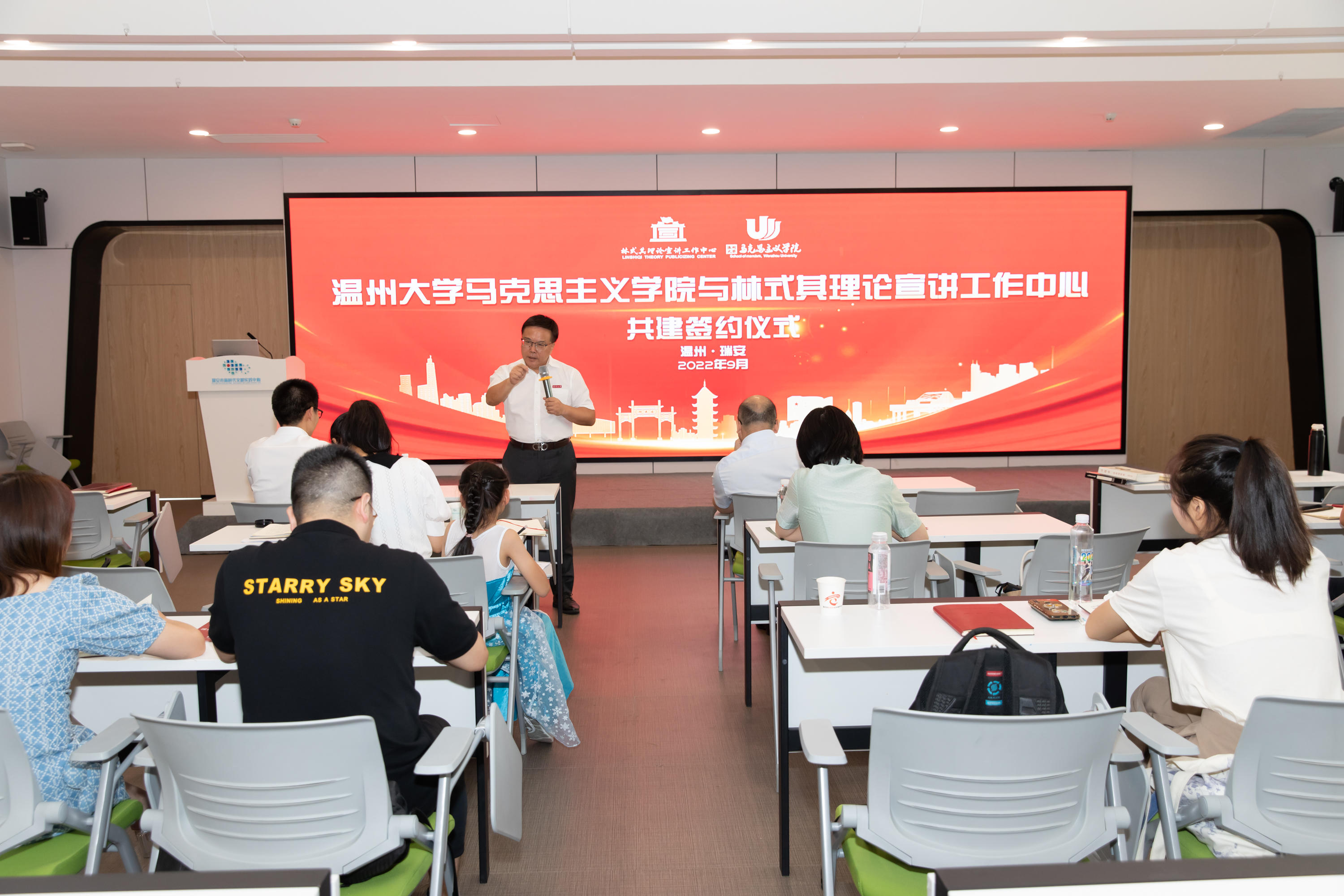9月3日是中国人民抗日战争暨世界反法西斯战争胜利纪念日。为让党的创新理论飞入寻常百姓家,更好推动省党代会精神深入人心,昨天下午,浙江省理论宣讲名师工作室校地合作交流会暨林式其理论宣讲工作中心第二十次集体学习在瑞安举行,杏吧视频 与瑞安市林式其理论宣讲工作中心携手开展校地合作交流会。